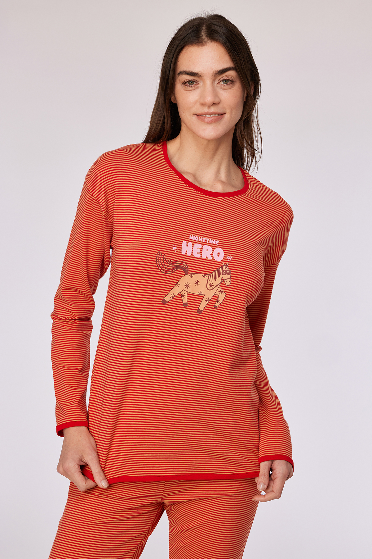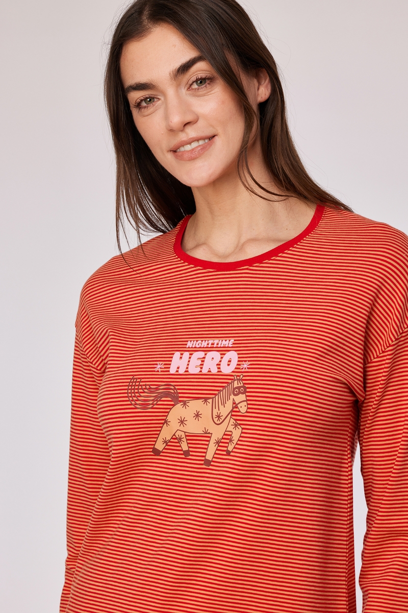 Kadın Pijama-Plg - 913-çizgili Turuncu